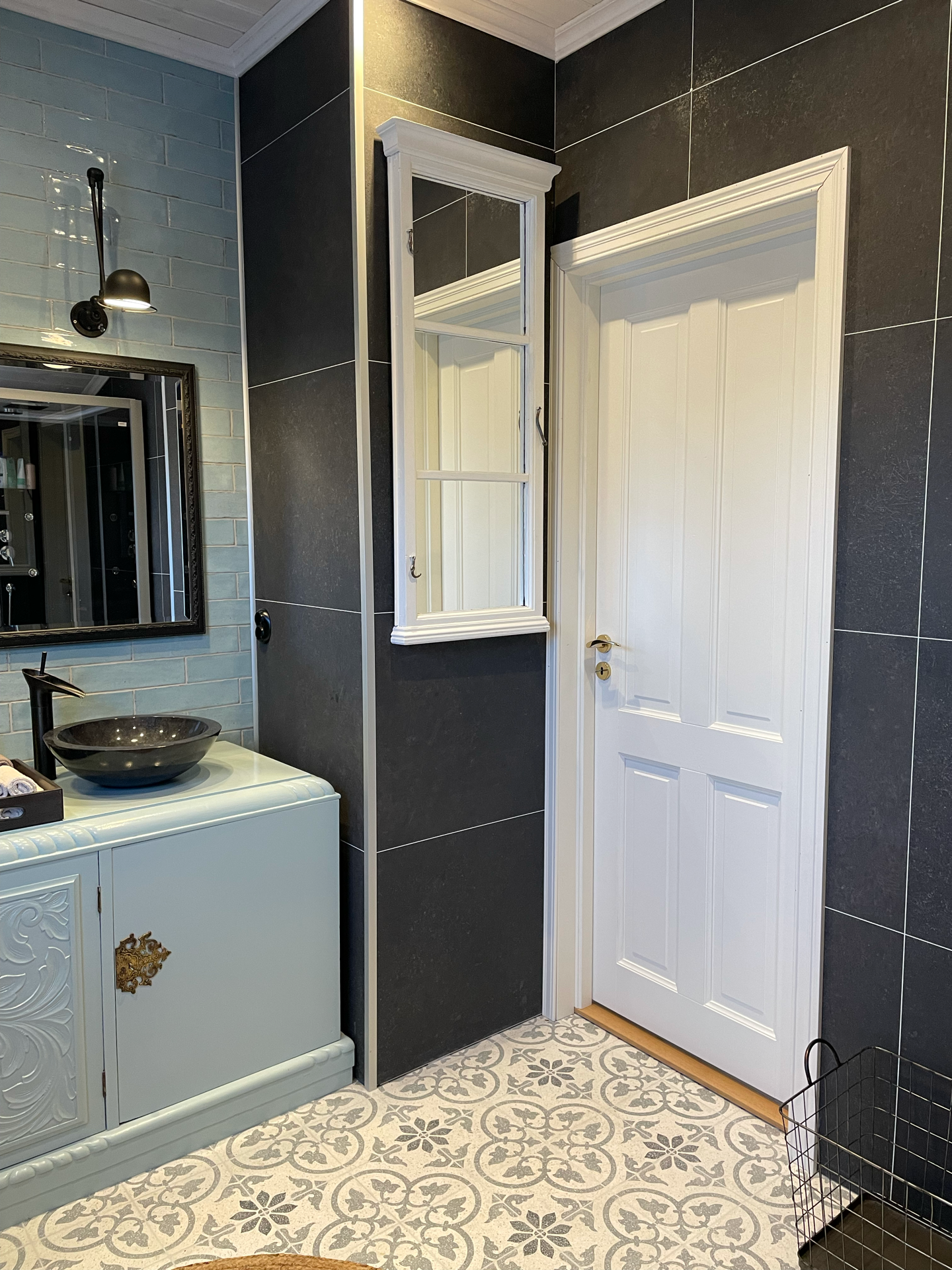 Det har tatt tid å få på plass alle detaljer på badet, men nå kan vi endelig si oss helt ferdige :) Og vi har fått god snekkerhjelp underveis. Og endelig kan vi gå på do inne og ta en dusj når vi har jobbet og slitt :)